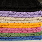 The knit has intact hems, so the entire width can be utilized.